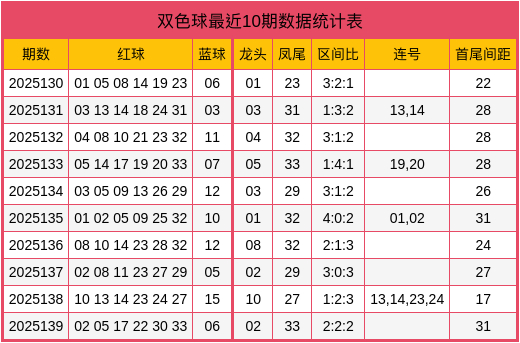 夏师傅第2025140期双色球数据统计表